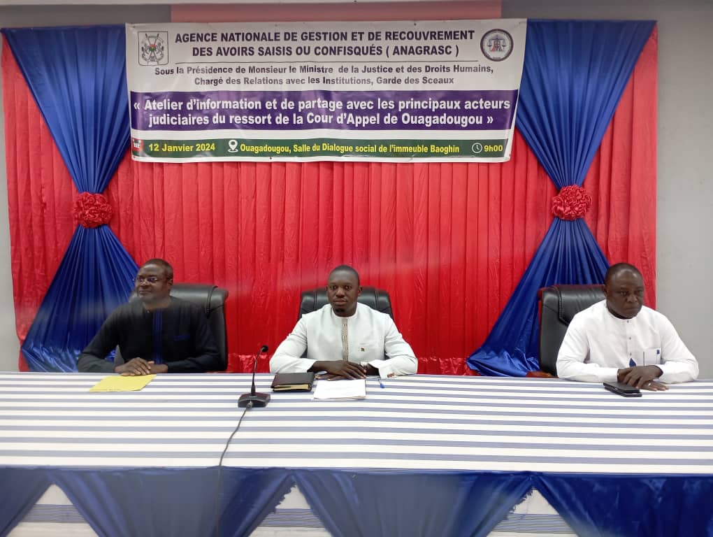 L’agence nationale de gestion et de recouvrement des avoirs saisis ou confisqués (ANAGRASC) a organisé un atelier d’information et de partage au profit des acteurs judiciaires du ressort de la cour d’appel, le vendredi 12 janvier 2024 à Ouagadougou.