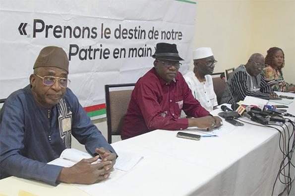 Le Front patriotique réaffirme son attachement aux principes de la nature civile du pouvoir politique et de la dépolitisation des Forces de défense et de sécurité (FDS). La structure l’a fait savoir lors d’une conférence de presse, dans la matinée du jeudi 3 novembre 2022 à Ouagadougou. Les premiers responsables du Front se sont dit mobilisés pour une Transition politique légitime et souveraine, convaincus qu’elle est la seule à emporter une adhésion consciente du peuple à l’entreprise de restauration de l’intégrité du territoire national, du retour à la paix, à la cohésion et à la prospérité nationale. Du reste, les conférenciers ont dénoncé « une volonté manifeste d’ostracisme vis-à-vis des hommes et femmes politiques » à la suite de la formation du gouvernement. Pourtant, a estimé le coordonnateur du Front patriotique, Germain Bitiou Nama, la fédération des intelligences, le dialogue et la concertation politique sont nécessaires pour sortir le Burkina Faso de l’impasse politico-sécuritaire dans laquelle il se trouve. Par ailleurs, selon lui, la présence de ministres du MPSR 1 dans le nouveau gouvernement n’accorde pas bonne presse aux nouvelles autorités. Il estime que la question des recriminations envers certains ministres a eu « un traitement léger » par les autorités.