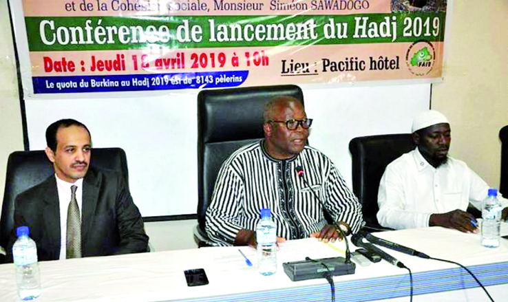 Le coût du hadj 2019 est fixé à 2 132 000 FCFA, soit une baisse de 153 000 FCFA. Cette diminution, selon le ministre en charge de l’administration territoriale, Siméon Sawadogo, a été possible grâce à la subvention accordée par l’Etat à hauteur de 1 100 000 000 FCFA. Il l’a dit, le jeudi 18 avril 2019, lors d’un point de presse organisé par le comité national de suivi du pèlerinage à La Mecque en collaboration avec le ministère de l’Administration territoriale, de la Décentralisation et de la Cohésion sociale. Cette année, ont informé les conférenciers, l’Arabie saoudite a renouvelé le quota des 8 143 pèlerins accordés au Burkina Faso. Et la convention entre l’Arabie saoudite et le Burkina qui consacre la participation du Burkina au hadj 2019 a été signée.