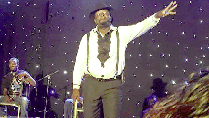 Entre danse, et musique, la prestation, selon son auteur, a été «un spectacle d’humour interactif». Son personnage, un vendeur ambulant ouvre sa valise, et présente ses articles au public. Chaque article représente une thématique de l’actualité sociopolitique du Burkina Faso et de l’Afrique en général. Un spectateur est ensuite désigné pour choisir l’une des marchandises, c’est-à-dire des boîtes contenant chacune un parchemin sur lequel est inscrit un sujet donné.