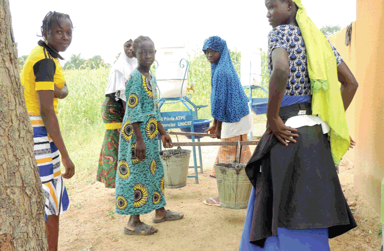 Plusieurs acquis de l’école de Saonghin en termes d’assainissement sont le fruit de la mise en œuvre d u programme Assainis- sement Total Piloté par les Ecoles (ATPE), financé par l’UNICEF et mis en œuvre au Centre-Sud par la Direction régionale de l’Eau et de l’Assainissement du Centre-Sud (DREA-CSD). Il s’agit d’une approche intégrée consistant à encourager les écoles à s’approprier les questions de leur hygiène et assainissement et à travailler dans l’optique de développer de façon durable de bons comportements en matière d’hygiène et aussi dans le domaine de la gestion hygiénique des menstrues des jeunes filles. Les blocs de latrines utilisés et ceux en perspective, les kits de lavage de mains, du savon, des kits de dignité pour les jeunes filles en âge de menstrues, des poubelles, des balais et d’autres équipements de nettoyage que s’est dotée l’école sont, entre autres, les fruits des interventions du programme ATPE.