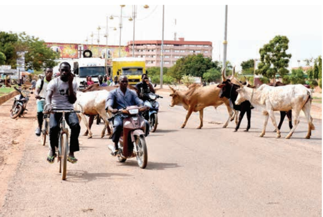 Cette image prise sur le boulevard Norbert Zongo, est une illustration parfaite du calvaire que vivent des Ouagalais sur certaines routes, où des usagers discutent la voie avec des animaux avec tous les risques.