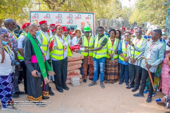 Ce jeudi 06 novembre 2025, la délégation accompagnée des autorités du département en charge des Affaires étrangères, a procédé à la remise de 23 tonnes de ciment au projet d’envergure de construction et d’aménagement des villes du Burkina, dénommé Faso Mêbo et initié par le Président du Faso, le Capitaine Ibrahim TRAORÉ.