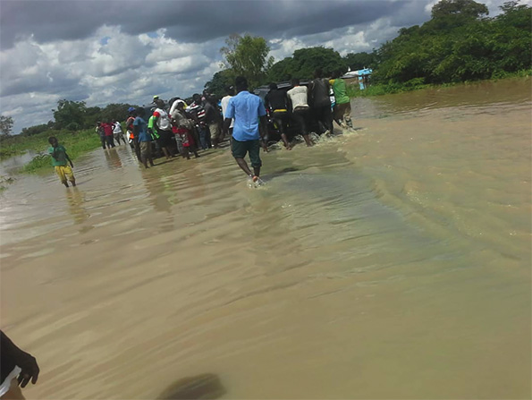 De forte pluies avait provoqué une montée des eaux qui ont littéralement submergé la chaussée la rendant impraticable sur une distance d’à peu près 3 km.