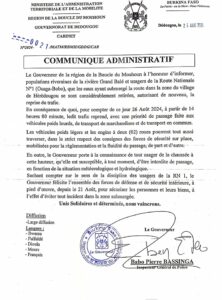 ACTUALITESFLASHLA UNE SITESOCIETE Inondation route nationale Ouaga-Bobo : La voie est ouverte à Hèrèdougou Par Wamini SIDWAYA - 26 août 2024 FacebookTwitterPinterestWhatsAppLinkedinE-mailImprimerTumblrTelegramViberNaver Le Gouverneur de la région de la Boucle du Mouhoun, Pierre Bassinga a annoncé l’ouverture de la voie au niveau de Hèrèdougou à compter de ce lundi 26 août 2024. lire le communiqué Sidwaya.info
