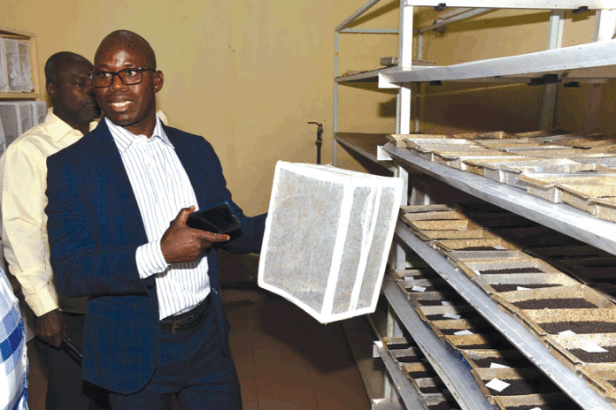Le 22 février 2022, nous faisons une immersion dans cette « usine » pas comme les autres. Les premiers responsables de l’insectarium, notamment le Directeur général (DG), Dr Soumaïla Pagabeleguem, accompagné de son directeur de la production et du laboratoire, Dr Abdramane Bagayogo, sont les guides du jour.