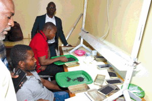 Une équipe est en train de préparer des colis de pupes pour le Sénégal. Dans une salle obscure et humidifiée, les agents s’affairent à compter avec minutie les « œufs » des mouches. Selon le directeur de la production, Dr Abdramane Bagayogo, ces pupes seront irradiées pour les rendre stériles, conditionnées dans des boîtes isothermes à 8°C et envoyées au Sénégal par avion.