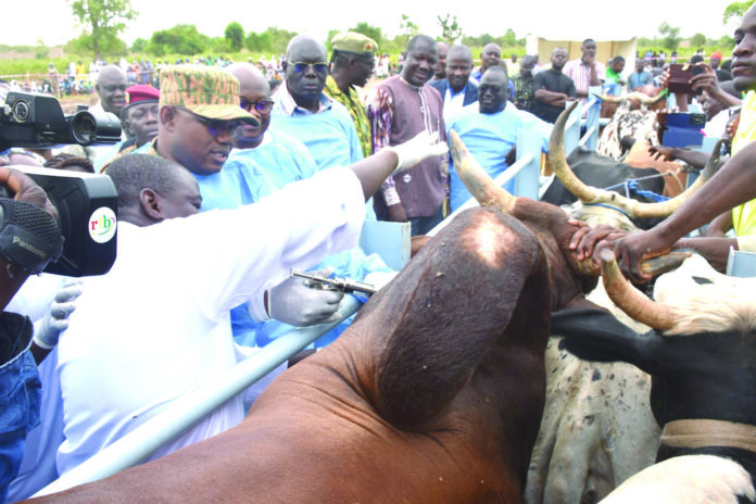Au cas contraire, l’on peut reprendre l’insémination pour permettre à l’animal d’aller très vite dans la reproduction », a expliqué Ardiouma Sirima. Il a, par ailleurs annoncé qu’en lieu et place de l’équipe nationale qui sillonnait tout le territoire national, il y a à présent la mise en place de brigades régionales pour subvenir aux besoins d’insémination artificielle durant toute l’année dans les régions. Le second acte de la cérémonie a été le lancement de la vaccination du cheptel contre la fièvre aphteuse qui va toucher 100 000 têtes de bovins cette année contre 3 000 têtes de bovins, en 2024, aux dires du DG des services vétérinaires, le capitaine vétérinaire Aboubacar Nacro.