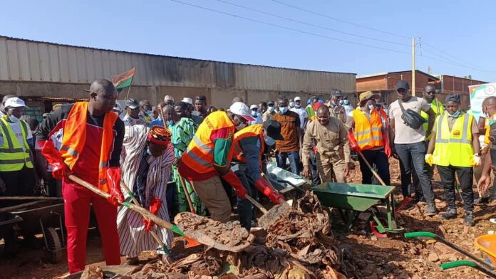 C’est dans l’ordre et la discipline en parfaite symbiose que le Secrétaire général (SG) du ministère de la Justice et des Droits humains, chargé des Relations avec les Institutions, Garde des Sceaux, Harouna Kadio et le Président de la délégation spéciale (PDS) de l’arrondissement numéro 2 de la ville de Ouagadougou, Ouendwaoga Jonas Sawadogo et son équipe ont ramassé les ordures à côté du canal jouxtant les rails à Larlé.