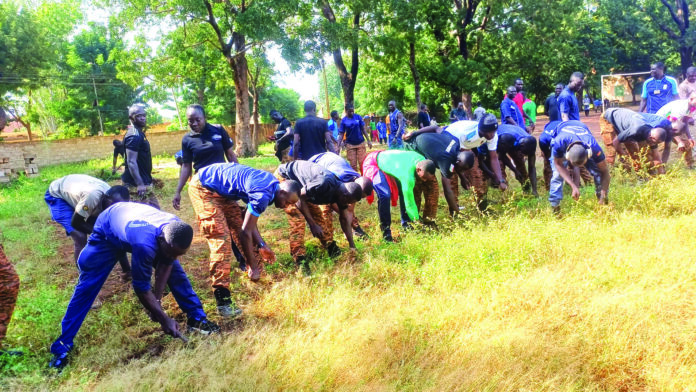 Selon le Chef d’Etat-major de la Gendarmerie nationale, son institution a formé des équipes afin de nettoyer la caserne de Paspanga d’une part et d’autre part participer aux journées de salubrité organisées par les ministères en charge de la sécurité et de la défense. « Nous avons pris l’engagement de nettoyer le Nelson qui est l’établissement le plus voisin. Nous avons vu lors de la montée des couleurs que le cadre n’était pas assez propre et, pour donner l’exemple à ces jeunes nous avons opté de nettoyer leur cadre d’apprentissage », a affirmé le colonel Kouagri Natama.