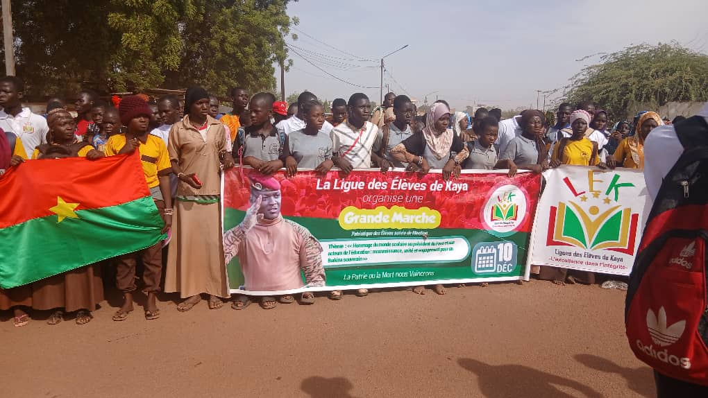 À l’instar des autres régions du Burkina Faso, la ligue des élèves de la région des Koulsé se sont rassemblés ce mercredi 10 décembre au rond-point de la femme sise au secteur 3 de Kaya, chef-lieu de la province du Sanbondtenga, pour un meeting de reconnaissance au président du Faso et aux acteurs de l’éducation.