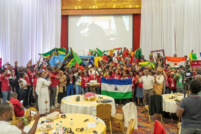 Nous, la jeunesse africaine, réunie depuis 47 pays lors du premier Mille Sommet de la jeunesse africaine sur les systèmes alimentaires et l’agroécologie, déclarons fièrement notre mission unie de transformer les systèmes alimentaires de l’Afrique. Organisé à Addis-Abeba, en Éthiopie, du 14 au 16 octobre 2024, ce Sommet des solutions a rassemblé plus de 300 jeunes en personne et plus de 1 000 participants virtuellement, offrant une plateforme puissante pour des discussions approfondies sur l’avenir des systèmes alimentaires de l’Afrique.