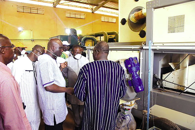 Le ministre de l’Agriculture et des Aménagements hydroagricoles, Salif Ouédraogo, a effectué sa toute première sortie, depuis sa nomination, sur Bobo-Dioulasso. Dans le cadre de cette visite, il s’est rendu successivement à l’unité de conditionnement de semences de Neema agricole du Faso (NAFASO), et au Centre agricole polyvalent (CAP) de Matourkou. A NAFASO, le ministre et son staff ont pu découvrir la chaîne de traitement et de conditionnement des semences, et les magasins de stockage des produits