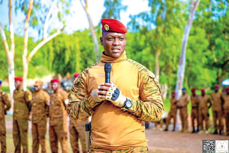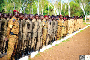 Continuez à jouer ce rôle également, à profiter de ces instants d’amour entre nous, leur parler, les amener à s’unir, à laisser tomber certains clivages qui sont nés rien que du fait de la politique. Vous devez contribuer à cela parce qu’être militaire, ce n’est pas juste tenir l’arme, courir, tuer. Non, vous êtes formés au-delà de cela. Si, vous défendez une patrie c’est qu’il y a toutes ces valeurs que vous incarnez et que vous devez pouvoir aussi exploiter pour unir vos populations civiles. Bonne formation pour ceux qui sont toujours en stage. Bon courage, on ne lâche pas le moral. C’est dur ici, mais seul les durs passent. Vous êtes durs et vous devez passer. Pour ceux qui sont sur le terrain, je vous souhaite une très bonne chance dans les opérations. Continuez donc à écumer les différentes forêts pour déceler d’éventuelles infiltrations. Continuez à protéger ces populations qui ne croient qu’en vous, qui ne comptent que sur vous. Que Dieu vous accompagne dans vos différentes missions. Que Dieu vous protège tout au long de vos différents combats. Que vous reveniez sains et saufs nous raconter les batailles et que nous puissions construire notre Burkina que nous souhaitons. La patrie ou la mort nous vaincrons ! »