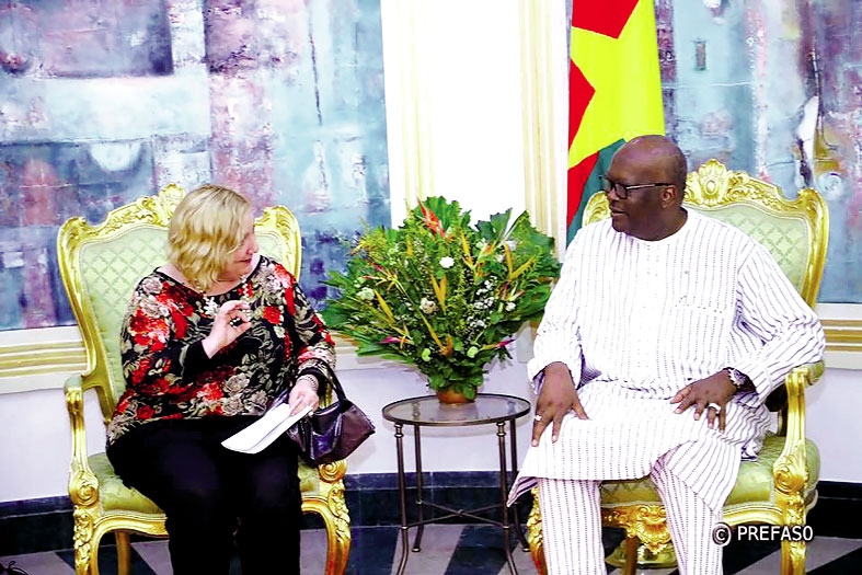 Le président du Faso, Roch Marc Christian Kaboré, a reçu en audience, le samedi 4 mai 2019, la vice-ministre des Affaires étrangères et de la Coopération internationale d’Italie, Emanuela C. Del Re. Au cours des échanges, il a été question de la lutte contre le terrorisme et du soutien aux déplacés.