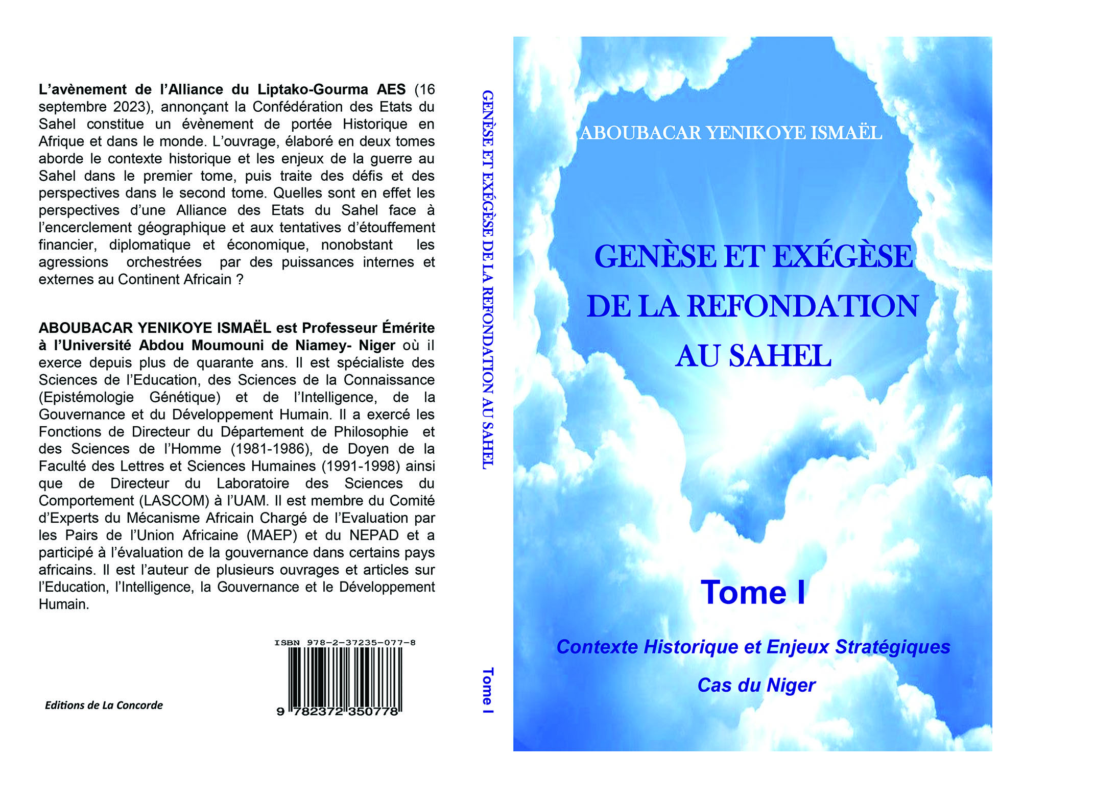 « Genèse et exégèse de la refondation au Sahel ». Le Tome 1 de cette publication qui fait 275 pages s’intéresse au : contexte historique et enjeux stratégiques. Cas du Niger. L’image de la couverture du livre a une forte charge symbolique positive : un ciel bleu, éclairé de nuages. On peut y voir la promesse d’un avenir meilleur pour l’AES avec deux composantes centrales : la lumière et l’eau qui s’annoncent à travers les nuages.
