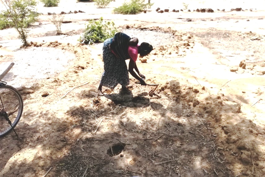 Aguiratou Sawadogo vit à Ramessoum, un village située dans la commune rurale de Arbollé, province du Passoré. Ce 21 juin 2019, sous un soleil de plomb, cette veuve de 35 ans, et sa fille Wendkuni sont occupées à faire des zaï, une technique culturale de récupération des terres arides. Elle consiste à creuser des poquets de 20 à 30 cm de diamètre et de 15 à 20 cm de profondeur. Ces trous sont remplis de fumure organique. Le zaï favorise l’infiltration des eaux pluvieuses, fertilise le sol et améliore les rendements agricoles. Pour Aguiratou Sawadogo, cette technique l’aide à nourrir ses cinq gosses, grâce à l’accroissement de sa production.