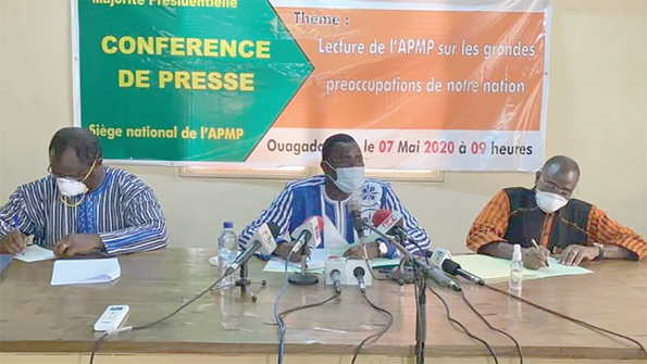 L’Alliance des partis et formations politiques de la majorité présidentielle (APMP) a organisé, le jeudi 7 mai 2020 à Ouagadougou, une conférence de presse sur l’actualité nationale. Au menu des échanges, la gestion de la pandémie du coronavirus et les élections de novembre prochain.