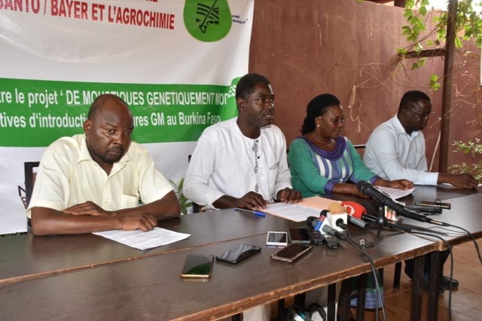 Le Burkina est devenu un laboratoire à ciel ouvert d’expérimentation de diverses cultures transgéniques et des moustiques Génétiquement modifiés(GM). En effet, après l’échec de l’aventure du coton GM, un futur drame programmé est en cours au Burkina, selon le Collectif citoyen pour l’agro écologie (CCAE). « Sous le prétexte de combattre le paludisme le Burkina est devenu, un laboratoire à ciel ouvert où les populations sont des cobayes d’une expérience hasardeuse et suicidaire. Il s’agit de manipulation de moustiques GM. Sous la houlette du projet Target malaria des œufs de moustiques GM ont été importés de l’Impérial college de Londres vers le Burkina en novembre 2016 », a expliqué le porte-parole du CCAE, Ali Tapsoba, lors du point de presse organisé, le 15 mai 2021, à Ouagagougou, à l’occasion de la marche mondiale contre Monsanto-Bayer et l’agrochimie. Target malaria bénéficie des financements de la Fondation Billet Melina et de l’Open philanthropy prject fund et de la Defense advanced research projetcs angency(DARPA), un organe de l’armée américaine. Ce qui laisse croire selon M. Tapsoba que Target malaria pourrait aboutir à la création d’une arme bactériologique à travers le bricolage des insectes. Depuis les lâchers de moustiques GM en juillet 2019, aucune étude d’impacts des lâchers sur les populations locales, les écosystèmes, la santé humaine, du nombre de moustiques recaptures…n’a été effectué, selon Ali Tapsoba. «Le terrorisme scientifique doit s’arrêter au Burkina. Nous refusons d’être des cobayes d’une science hasardeuse. Nous exigeons un arrêt du projet Target malaria. Un moratoire sur les OGM est nécessaire », a-t-il insisté. Pire, a-t-il ajouté : « Dans le village de Soumousso aux encablures de Bobo-Dioulasso se déroule une autre expérience mortelle ? Là-bas, on pulvérise les moustiques d’une décoction de champignon toxique et de gène d’araignée d’Australie et du scorpion du désert. Le champignon GM secrète une puissante neurotoxine qui sera fatale aux moustiques ». Les tentatives d’introduction du niébé BT, une variété génétiquement modifié pour résister aux insectes ravageurs afin de réduire selon ses concepteurs les pertes de rendement de grains de niébé, inquiète aussi le collectif. Pourquoi, tant d’inquiétudes concernant l’expérimentation des organismes GM ? Le porte-parole du CCAE a répondu qu’avec ces manipulations génétiques, les risques liées à la production en continue de la toxine Bt par la plante sur la vie des sols et de la biodiversité, la santé humaine à court, moyen et long terme, les risques de contamination des variétés locales…sont évidente. «Avec le virus de Wuhan qui défit toutes les avancées scientifiques aujourd’hui, on devrait stopper la manipulation des virus », a indiqué M. Tapsoba. Pour lui, avec les manipulations de moustiques GM, le Burkina risque d’être le prochain foyer d’expansion de pathogènes. « Nous risquons de vivre pire que la Covid-19, car la transmission du virus se fera par les moustiques », a estimé le porte-parole du CCAE. Quelles alternatives vous proposez contre le projet Target malaria que vous qualifiez de très dangereux pour les populations ? Il a cité, l’Artemisia qui selon ses dires est une plante, un remède naturel contre le paludisme et diverses maladies. Le collectif prévoit plusieurs actions dont la mobilisation citoyenne, la diffusion des savoirs locaux contre le paludisme, des actions judiciaires dans les jours à venir pour stopper les projets de modifications génétiques au Burkina Faso.