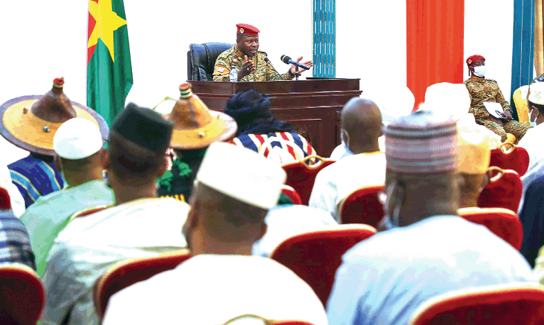 Le Président du Faso, le lieutenant-colonel Paul-Henri Sandaogo Damiba, a échangé, le jeudi 24 février 2022 à Ouagadougou, avec les leaders religieux, coutumiers et les notabilités des régions les plus touchées par le terrorisme.