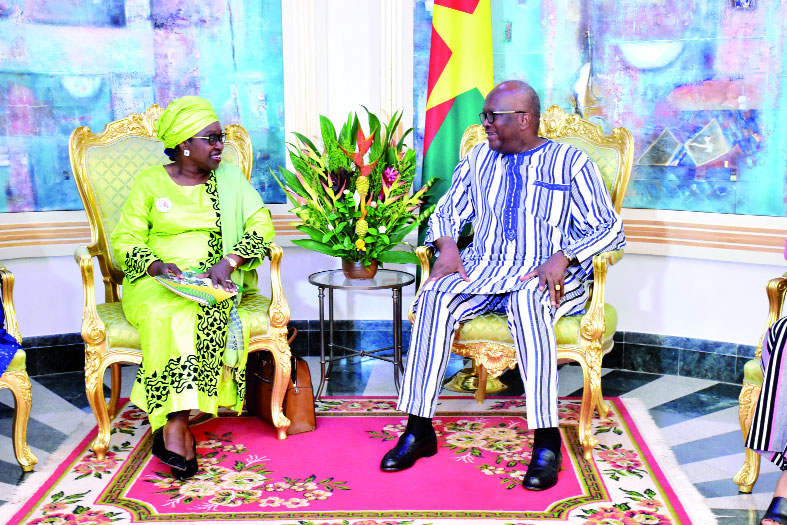 Le président du Faso, Roch Marc Christian Kaboré, a reçu, le mercredi 29 mai 2019 à Ouagadougou, respectivement l’envoyée spéciale du président de la commission de l’Union africaine (UA) pour les femmes, la paix et la sécurité, Bineta Diop et le directeur adjoint du département Afrique du Fonds monétaire international (FMI), Dominique Desruelle. L’insécurité au niveau des frontières et le programme sur les finances publiques ont été les principaux sujets abordés.