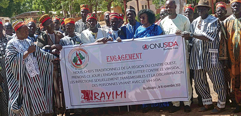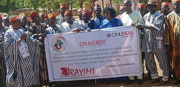 Ils ont pris l’engagement au cours d’une cérémonie, organisée le mardi 16 novembre, par l’association Rayimi dirigée par Naaba Saaga 1er, en présence de la directrice-Pays de l’ONU-SIDA au Burkina Faso, Félicité Nsabimana Ndimira. « Nous, chefs traditionnels de la région du Centre-Ouest, prenons l’engagement ce jour de lutter contre le VIH-SIDA, les infections sexuellement transmissibles et la discrimination des personnes vivant avec le VIH-SIDA », a déclaré le porte-parole des leaders coutumiers. Selon Naaba Saaga 1er en tant que chef coutumier, son bonnet doit être au service de la communauté et c’est ainsi qu’il a mobilisé ses pairs autour de lui pour engager une lutte contre cette maladie afin de réduire le taux de prévalence de la zone.