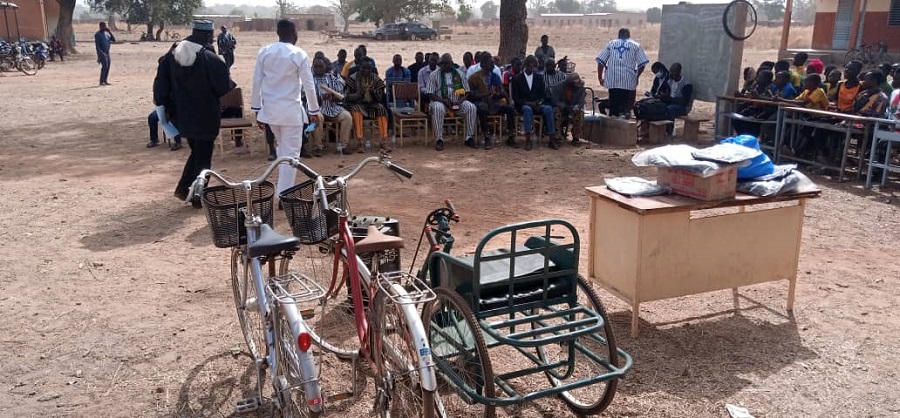 En plus de la remise des 03 tableaux externes et des 06 banquettes en béton d’une valeur de 750 000F, Polè Batuor aaussi récompensé la meilleure élève à l’examen du CEP 2021, Dabiré Guilko Agatha, et la seule candidate admise au BAC 2021 au lycée départemental de Niégo, PODA Angeline. Elles ont reçu chacune un vélo et des fournitures scolaires d’une valeur totale de 100 000F.