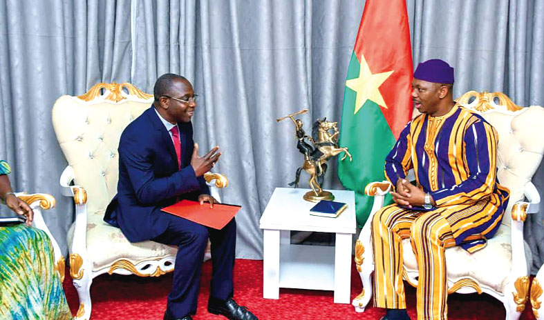 Le président de l’Assemblée législative de Transition (ALT), Ousmane Bougouma a accordé une audience au directeur national de la Banque centrale des Etats de l’Afrique de l’Ouest (BCEAO) pour le Burkina Faso, Armand Badiel, dans la matinée du 12 janvier 2024, à Ouagadougou. « Nous savons que l’ALT est un organe décisif pour notre pays et la banque centrale, en tant qu’institution de service public, a l’obligation de venir partager les actions que nous conduisons et recueillir les orientations qui peuvent nous guider dans notre action de tous les jours en fonction des missions qui nous sont confiées », a-t-il déclaré à la fin de l’entretien. En ce qui concerne la politique monétaire de la BCEAO, M. Badiel a expliqué que les actions entreprises en 2023 ont consisté à une augmentation par touches successives des taux d’intérêt dans l’objectif essentiel de la maitrise de l’inflation. « L’inflation est vraiment le cancer pour le pouvoir d’achat des populations. Nos actions ont conduit à une baisse du taux d’inflation qui est passé de 7,4% en 2022 à 3,4% en 2023 et nos projections pour 2024 nous situeraient autour de 2,5% », a-t-il poursuivi. Selon le directeur national de la BCEAO pour le Burkina, le président de l’ALT a apprécié les actions menées par la BCEAO pour contenir l’inflation. « Il a aussi donné une orientation que nous avons bien accueillie. Il s’agit de la nécessité pour la Banque centrale en tant qu’institution publique de mieux communiquer.