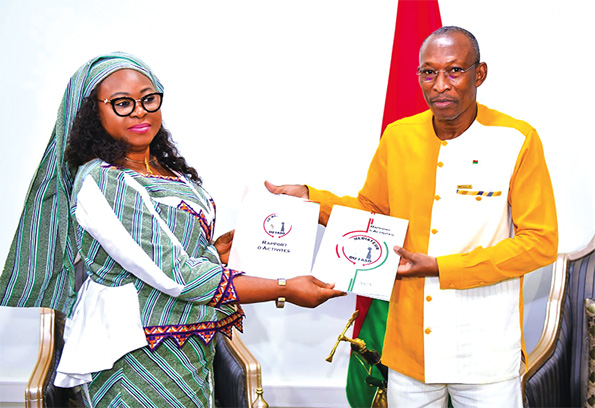 Le Médiateur du Faso, Fatimata Sanou/Touré, a, au cours d’une audience avec le Premier ministre, Me Apollinaire Joachimson Kyélem de Tambela, le lundi 12 juin 2023, remis les rapports d’activités 2021 et 2022 de son institution.