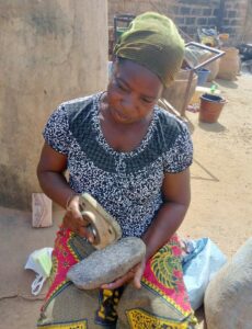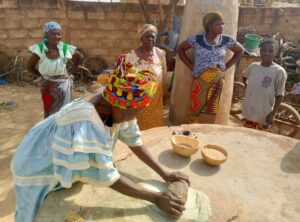 Elle explique que l’accueil d’un étranger impose la préparation du traditionnel zom-koom, boisson obtenue à partir de mil écrasé à la meule, pétri avec du beurre de karité et relevé d’un peu de piment. « Du point de vue écologique, la meule est la meilleure option. La farine ne dégage ni odeur de gasoil ni arrière-goût suspect », affirme-t-elle. Lors des cérémonies coutumières, telles que le Poug-poussoum (PPS), qui signifie salutations de la femme en mooré ou les mariages traditionnels, les céréales sont systématiquement moulues à la meule. Quelle que soit la quantité, toutes les femmes se mobilisent. Elles reconnaissent unanimement par ailleurs, que le tô issu de la meule est plus savoureux que celui du moulin moderne.