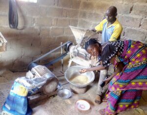 Il les a acquises à près d’un million F CFA et les installations électriques lui ont coûté environ 200 000 F CFA. Son savoir-faire et la passion qu’il nourrit pour ce métier de meunier depuis plusieurs années attirent une clientèle fidèle. Au quartier Niangdo, dans la cour d’Adama Tiemtoré, un groupe de jeunes égrène le maïs à côté d’un moulin traditionnel, implanté à l’extrémité de la concession. Sanata Kabré et Alimata Nikiéma, malades depuis une dizaine de jours, n’ont pas encore rejoint les champs pour les récoltes tardives d’arachides. Sanata raconte que deux semaines plus tôt, elle a dû écraser du petit mil à la meule pour préparer de la bouillie pour toute la famille, le moulin moderne du quartier étant tombé en panne. « Le meunier a mis trois jours avant que le ronronnement ne reprenne », explique-t-elle.