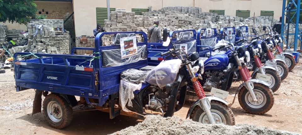 Ce don est composé de 100 tonnes (t) ciment, de 10 camions remorque de sable, 5 tricycles et 30 sacs d’oxyde.