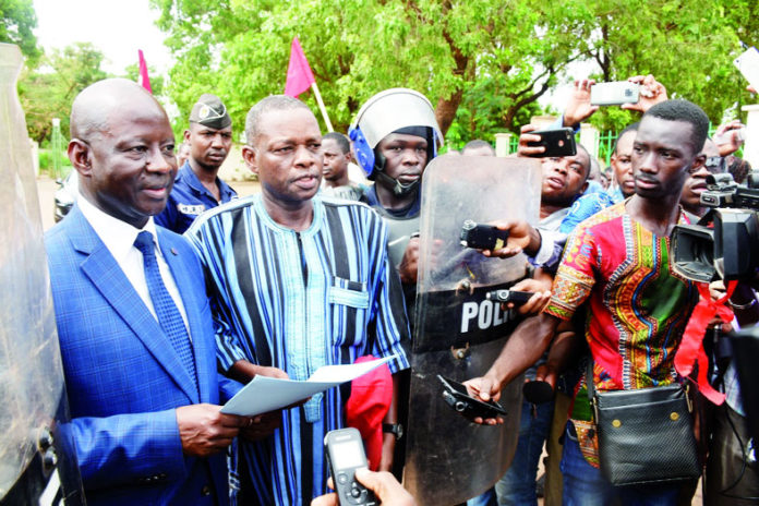 «On travaille 7/7 jours et 24h/24h», «A métier particulier, traitement particulier», «Nous ne sommes ni robots, ni esclaves», «Non à la remise en cause des acquis de l’insurrection populaire», «Pour la mutation diligente de la de la RTB et de Sidwaya en sociétés d’Etat», «Nous avons trop réfléchi et trop patienté», «Trop c’est trop», «Y ‘en a marre». Ce sont entre autres messages figurant sur les pancartes et scandés par les travailleurs des médias publics du Burkina Faso, hier jeudi 13 juin 2019, au cours de la marche marquant le dernier jour des 48 heures de sit-in, décrétés par le Syndicat autonome de l’information et de la communication (SYNACTIC). Partis de la RTB, leur «Quartier général», aux environs de 9 heures, les marcheurs ont rallié le Premier ministère, en passant par l’ex-Assemblée nationale. Arrivée à la primature à 9h50, en l’absence du chef du gouvernement, ils ont été reçus par son directeur de cabinet, Mamadou Sérémé. En sa présence, les manifestants ont chanté l’hymne national, avant de lui livrer le contenu du message adressé au Premier ministre. Celui-ci traduit leur mécontentent et désapprobation du traitement réservé à leurs préoccupations par le gouvernement, précisément la lenteur dans la mutation de leurs organes en sociétés d’Etat. Un processus qui, selon le secrétaire général du SYNATIC, Siriki Dramé, a duré trois ans. Il a poursuivi que les rapports de la commission mixte réunissant les experts de plusieurs ministères ont été introduits en Conseil des ministres pour l’adoption des décrets d’application du changement de statut. «Les suites réservées au dossier par le Conseil des ministres du 29 mai 2019 ont créé une onde de choc au sein des travailleurs des médias publics. Ils ont été surpris, par la décision du gouvernement qui préconise encore des réflexions approfondies en dépit du long temps déjà mis, pour aboutir aux propositions pertinentes et consensuelles de la commission mixte», a déploré le SG Dramé. Il a, en outre, soutenu que pour les travailleurs, c’est un «recul grave» dans la volonté du gouvernement d’opérationnaliser le statut de sociétés d’Etat et, ce, conformément aux lois sur les médias de 2015. C’est pourquoi, dans la note adressée au chef de l’exécutif, les travailleurs des médias publics ont exigé du gouvernement la mutation diligente et sans conditions des Editions Sidwaya et de la RTB en sociétés d’Etat avec l’ensemble du personnel, telle que recommandé par la commission mixte. A cela, s’ajoute la dotation conséquente de ces médias en équipements et moyens adéquats pour mener à bien leurs missions et le versement de la taxe de soutien au développement des activités audiovisuelles de l’Etat aux médias publics, conformément à la loi sur l’audiovisuel. «Tout en vous souhaitant bonne réception de la présente adresse, les travailleurs des médias publics réaffirment leur détermination à entreprendre toutes formes de lutte pour l’aboutissement de leurs justes et légitimes revendications», a dit Siriki Dramé, avant de transmettre la note. «Au nom du Premier ministre, qui est en déplacement à Genève, je récupère votre mot qui lui est adressé. Je puis vous assurer que je vais le remettre à qui de droit», a déclaré le représentant du chef du gouvernement.
