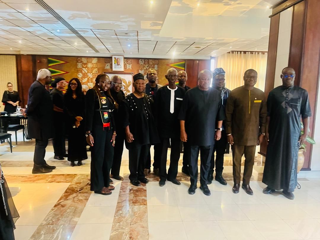 En plus du Camarade Ambassadeur du Burkina Faso au Ghana, le Ministre était accompagné par le Coordonnateur du Projet de Construction des Infrastructures du Mémorial Thomas SANKARA et des représentants du Comité International du Mémorial Thomas Sankara ainsi que de la famille de Thomas SANKARA.