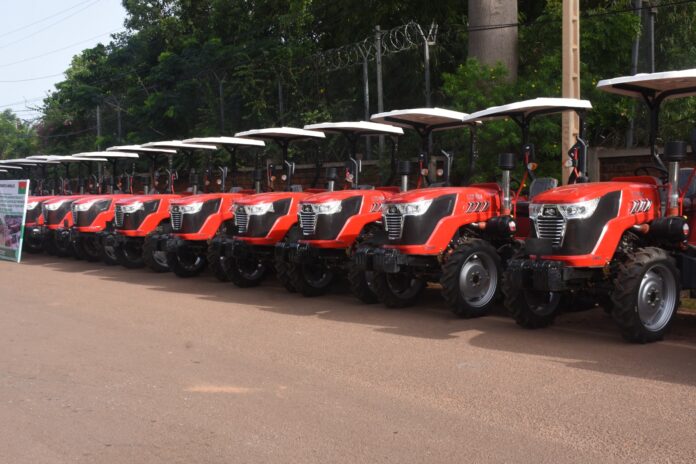 Le Président du Faso, le Capitaine Ibrahim Traoré a procédé à la remise de matériel et d’intrants agro-pastoraux et halieutiques, d’un coût global de 104 milliards de F CFA, au ministère de l’Agriculture, au profit du monde rural. C’était en début de matinée de ce jeudi 22 mai 2025 à Bobo-Dioulasso. Ce geste vient après une première remise du genre l’année dernière, qui avait coûté 77 milliards de F CFA. Ce matériel devrait permettre aux producteurs d’améliorer conséquemment les rendements de leurs productions, de diminuer la pénibilité de leur travail, et par ricochet, l’atteinte de l’autosuffisance alimentaire au pays des hommes intègres dans un proche horizon. Plus de détails sur l’activité dans nos prochaines publications.