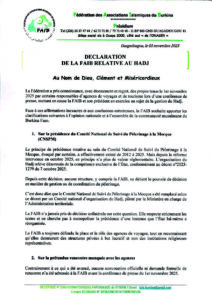 La Fédération des associations islamiques du Burkina (FAIB) a, dans un communiqué, apporté des éclaircissements sur les propos tenus par des agences de voyage en son encontre sur l’organisation du Hadj.