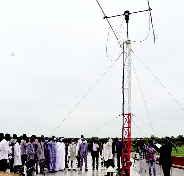 La station au sol du Burkina-Sat1 est opérationnelle. Implantée au sein de l’Université Norbert-Zongo à Koudougou, elle est composée d’une antenne UHF/VHF, fixée à un mât de cinq mètres de hauteur, d’un module radio transmetteur et receveur UHF/VHF, d’un dispositif de contrôleur et de « tracker » de satellite, d’un ordinateur et d’un écran d’affichage, a expliqué le doctorant en 2e année en géophysique externe, option Physique ionosphérique, Sibri Alponse Sandwidi. Les antennes permettront, selon lui, de communiquer avec les satellites. « Au regard des signaux transmis par les satellites passant au-dessus de la station, seule l’antenne VHF est utilisée pour la réception.
