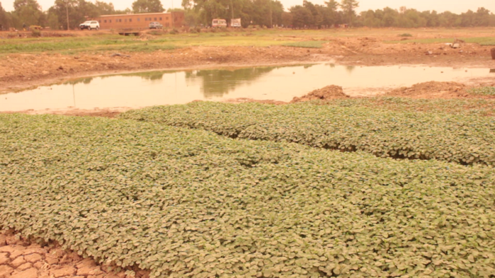 Barrage n°2 de Tanghin secteur 17 de l’arrondissement 4 de Ouagadougou, il est 13h30 le dimanche 2 mai 2021. Le ciel s’est assombri. Un nuage de poussière épaisse s’abat sur le barrage. Une grande partie de la superficie du barrage s’est vidée de son eau. Le sol effrité et fendillé. Sur cette vaste étendue asséchée, des maraichers tentent toujours, dans l’étang de profiter des dernières flaques d’eau pour arroser leurs planches aménagées à proximité.
