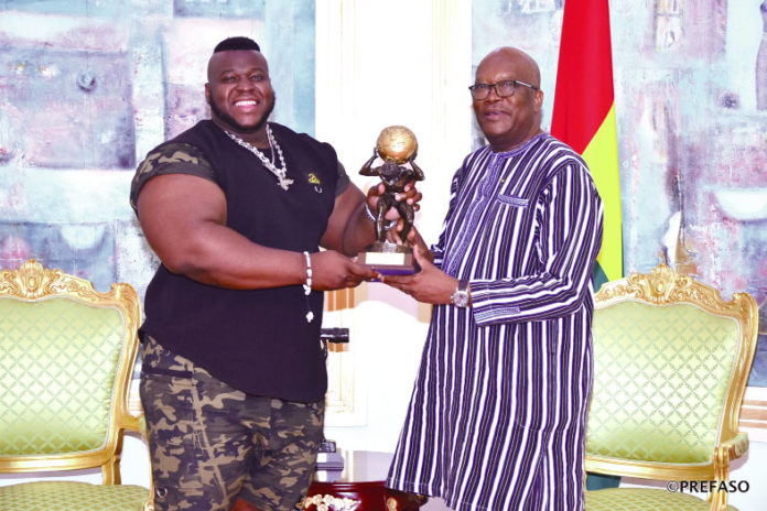 Le président du Faso, Roch Marc Christian Kaboré, a reçu en audience, le mardi 11 juin 2019, le champion du monde de logt lift, Iron Biby.