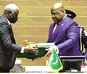 Le Président sud-africain, Cyril Ramaphosa, a passé le témoin au Congolais Félix Tshisekedi, pour la présidence tournante annuelle de l’Union africaine (UA). Il a été élu lors du 34e sommet de l’Union, tenu le samedi 6 février 2021 par visioconférence. Un sommet qui a vu la participation de 55 Etats, parmi lesquels le Burkina Faso qui a été représenté par le Président du Faso, Roch Marc Christian Kaboré, qui a suivi les travaux à partir de Kosyam. Selon le ministre des Affaires étrangères, de la Coopération, de l’Intégration africaine et des Burkinabè de l’étranger, Alpha Barry, le sommet avait deux grands points à l’ordre du jour. Il s’agit de l’élection à l’interne et de la pandémie de la COVID-19.