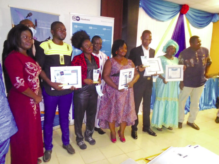 Pour le parrain de cette nuit des lauréats, le coordonnateur des actions du G5 Sahel/Burkina Faso, Norbert Souako Kohoun, le traitement de l’information en temps de crise est un enjeu majeur à la consolidation de la cohésion sociale et à la paix. D’après lui, la participation des trois pays du Sahel à ce prix est un signal fort. « Un des objectifs du G5 Sahel est de faire de l’espace sahélien, une zone économiquement intégrée, socialement prospère et culturellement riche dans un environnement de paix et de sécurité », a confié le parrain. Il pense que l’organisation de ce prix est déjà une contribution à l’atteinte de cet objectif. A écouter M. Kohoun, le G5 Sahel, depuis sa mise en place, n’a de cesse d’œuvrer pour le renforcement de capacités des journalistes. « C’est ensemble avec les journalistes que nous allons pouvoir informer de façon juste les populations et à les sensibiliser pour que nous puissions travailler pour la cohésion sociale et la paix dans notre espace », a indiqué le coordonnateur-pays du G5 Sahel. Soutenu dans son aventure par Deustsche Welle AKademi, la structure allemande, par la voix de son représentant, Boureima Salouka, a réaffirmé la volonté de la DW Akademie à travailler avec le RIJ car l’action de ce dernier entre en droite ligne dans sa vision. « Je vois en cette initiative un appel à la responsabilité sociale des journalistes qui doivent traiter les informations sensibles avec dextérité », a avoué M. Salouka. Au cours de cette nuit, la veuve du Dr Koffi Amétép, a reçu une attestation de reconnaissance pour tous les efforts consentis par son mari dans la mise en place du réseau.