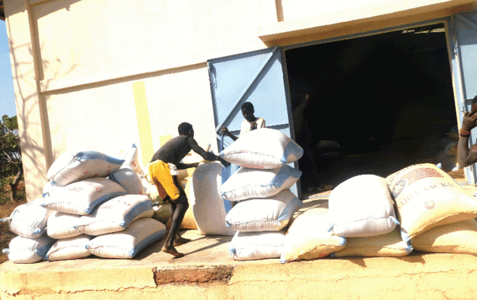 Ce lundi 6 décembre 2021, sur une pile de sacs de céréales, M. Sama supervise ses enfants en train de faire des va-et-vient de son domicile à un magasin de stockage à l’aide d’un tricycle pour y convoyer des sacs de maïs. « Depuis une dizaine d’années, après chaque récolte, je warrante une bonne partie de ma production », laisse entendre M. Sama, à la question de savoir pourquoi stocker ses vivres dans ce magasin.