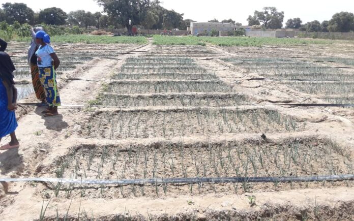 Le site, d’une superficie d’un hectare (ha) et demi, est situé dans le village de Kiaramom, rattaché à la commune de Gon-boussougou, juste à deux km. Sur les lieux, on y aperçoit des périmètres aménagés où sont cultivés de l’oignon, de la tomate, de l’aubergine, des choux, etc. Sous le soleil, alors que certaines femmes aménagent des espaces, d’autres, enfants au dos, se l’arrosent des plants. Ce jour-là, indique-t-on, l’eau était disponible dans le château.