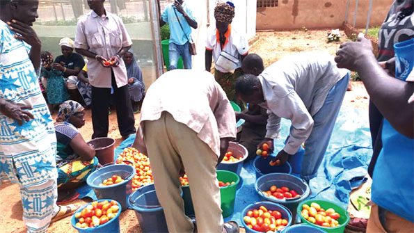 Donc le 1er groupe monte le matin, le 2e à midi et le 3e le soir », détaille le président du comité de gestion du groupe, Yassia Sawadogo. Après environ deux mois de dur labeur, la première récolte a eu lieu le 28 août dernier. « C’est environ 800 kg de tomate qui ont été cueillis et vendus. Nous avons eu 87 000FCFA. Cette somme a été utilisée pour acheter de la semence de maïs et de pastèque et de l’engrais pour agrandir le site. Nous venons de mettre en terre ces semences. Quand la production sera abondante, nous aurons de l’argent que l’on pourrait mettre à la disposition des bénéficiaires sous forme de crédit pour qu’ils puissent mener des activités génératrices de revenus », indique le président du comité de gestion. C’est le souhait de tous les bénéficiaires, avoir un fonds pour démarrer une activité en plus de la production maraichère.
