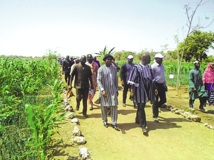 de la remise du matériel et d’équipements, les officiels ont visité des réalisations dans le barrage de Nabadogo parmi lesquelles, la culture de différentes spéculations.