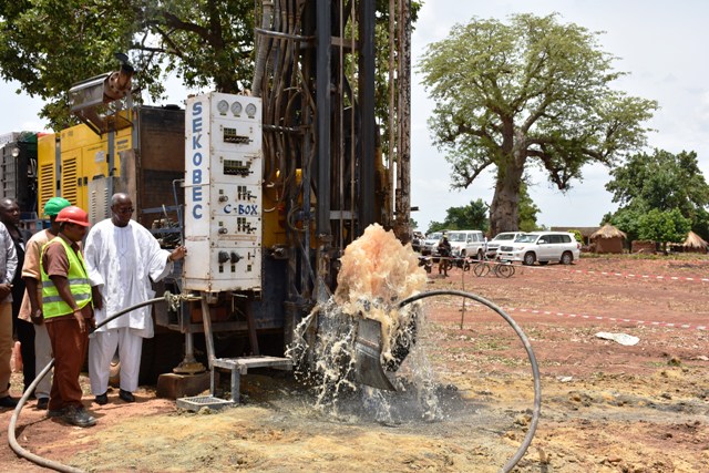 Le Burkina Faso disposera d’ici cinq ans de données actualisées sur ses ressources en eau souterraines et assoir son cadre gestion. Ce, grâce au Programme d’approvisionnement en eau et d’assainissement (PAEA) dont le top de départ a été donné par le Premier ministre Christophe Joseph Marie Dabiré le jeudi 25 avril 2019 à Kilingbara, un village de la commune de Kampti devant une foule joyeuse. Ce programme qui a une durée de vie de cinq ans vise en plus, selon le ministre de l’Eau et de l’Assainissement, Niouga Ambroise Ouédraogo, le renforcement du capital humain de son département et de l’ONEA ainsi que l’amélioration de l’accès aux services d’eau potable et d’assainissement. Ainsi, il est prévu dans 66 communes rurales des régions de la Boucle du Mouhoun, des Cascades, des Hauts-Bassins et du Sud-Ouest, la réalisation de 1220 forages équipés de pompes à motricité humaine, 90 Adductions d’eau potables simplifiés (AEPS), 16 forages profonds et 14 piézomètres, 50 forages productifs dont 16 permettront la réalisation des adductions d’eau potable multi-villages, 50 000 latrines familiales, 10 200 cabines d’assainissement avec dispositifs de lavage de mains dans des écoles, centres de santé et lieux publics…En Outre, le programme interviendra dans 14 centres urbains en faisant 82 000 nouveaux branchements privés et environ 330 bornes fontaines. L’augmentation de la capacité de production de 17 000m3/j par des installations de pompage et de stockage d’eau dans certains centres urbains, la construction de 85 000 latrines familiales et 1 050 nouvelles cabines d’assainissement, etc. sont aussi prévus. Pour toutes ces réalisations qui permettront l’accès « d’environ 1 160 000 personnes supplémentaires » aux services d’eau potable et d’assainissement et une meilleure connaissance des eaux souterraines du pays le PAEA dispose d’un budget d’environ 180 milliards de FCFA dont plus de 150 milliards de FCFA de la Banque mondiale.
