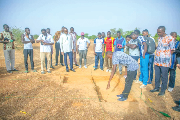 Des archéologues ont reçu les félicitations et encouragements du ministre en charge de la culture, Jean Emmanuel Ouédraogo, au cours d’une visite sur le site de recherche archéologique de Wargoanda, situé dans le village de Soulgo, région du Plateau central. C’était le mardi 28 mai 2024. Sur cette butte anthropique qui fait désormais office de l’école sous régionale de formation des archéologues était dressé le palais du roi Wargoanda, « un personnage important de l’histoire », a expliqué Dr Lassina Simporé, enseignant-chercheur à l’université Joseph- Ki-Zerbo. Sur le site, les chercheurs ont retrouvé des vestiges de céramique et d’habitation, des ossements humains et animaux, du matériel de meunerie pour écraser des céréales, etc.