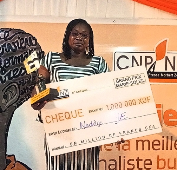 La redactrice adjointe de Sidwaya, Nadege Yé, est la nouvelle lauréate du Prix Marie Soleil-Frère de la meilleure Journaliste burkinabè.Elle a reçu son prix au cours d’une cérémonie organisée, le vendredi 18 octobre 2024, au Centre national de presse Norbert Zongo (CNP-NZ).