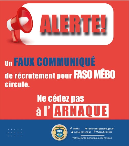 La BCLCC invite les internautes à faire preuve d’une extrême vigilance et à ne se fier qu’aux sources officielles pour toute information concernant l’initiative « Faso Mêbo ».