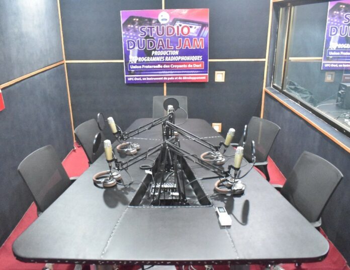 L’Union fraternelle des croyants de Dori (UFC-Dori) dispose désormais d’un studio de production de programmes radiophoniques. Réalisé et équipé à hauteur de 35 millions de F CFA, le joyau est composé d’une salle d’attente qui sert de bureau, de salles de régie et d’une salle d’enregistrement. Inaugurée le lundi 29 septembre 2025 à Dori, sa réalisation s’inscrit dans le cadre de la mise en œuvre du projet « Maîtrise inclusive et participative des terres et de l’eau pour la paix », par l’UFC-Dori et financé par la Fondation PATRIP. En abrégé projet « Jam’Borders », « jam » signifiant « paix » en langue nationale Fulfuldé et « borders » qui veut dire en Anglais « frontières », soit la « paix aux frontières ».